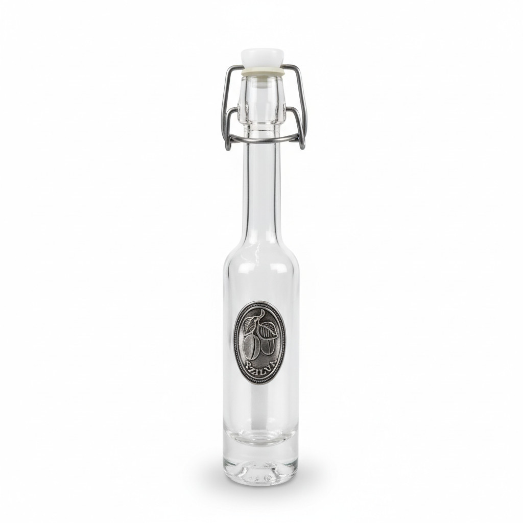 Az ón címkés, csatos üvegpalack egyesíti a hagyományos kézműves technikát a modern eleganciával. Az ón címke nemcsak esztétikai szempontból kiemelkedő, hanem a palack tartalmának egyedi megjelenést is kölcsönöz.