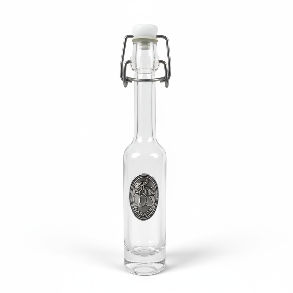 Az Ón címkés palack csatos 0,04l Barack egy exkluzív megjelenésű üveg, amely különleges alkalmakra és ajándékozásra lett tervezve. Az ón címkés részletek finoman kidolgozottak, elegáns megjelenést biztosítanak, és emelik az italok esztétikai értékét. A palack 0,04 literes űrtartalma miatt ideális kis mennyiségű alkoholos italok, például barackpálinka tárolására.