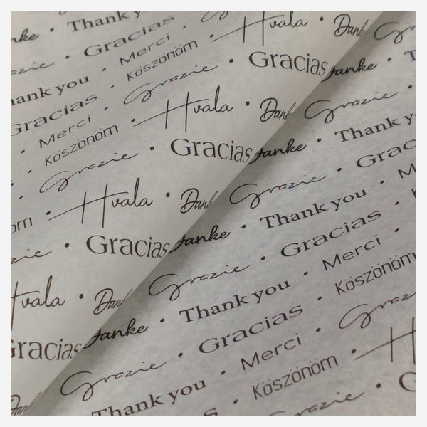 Válassza ezt a selyempapírt, ha fontos Önnek a minőség és az elegancia, valamint a köszönet kifejezése a világ különböző nyelvein.